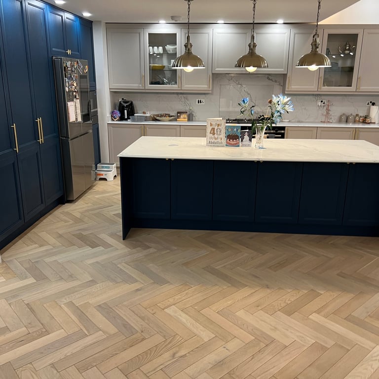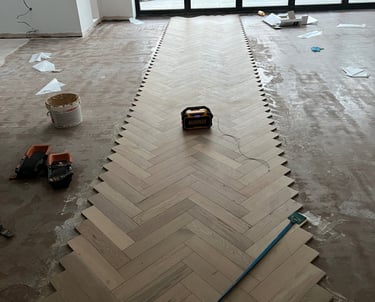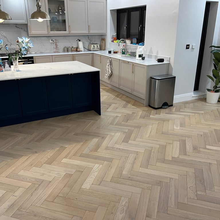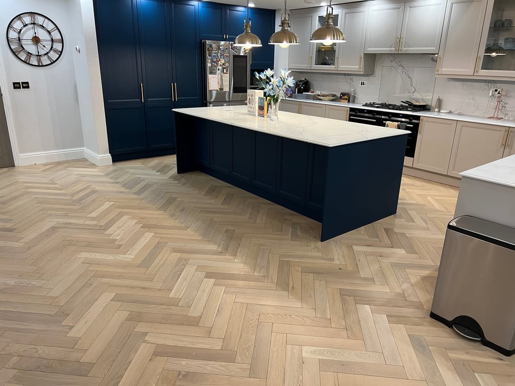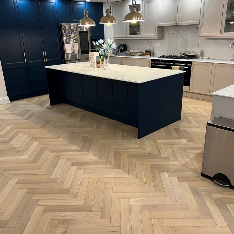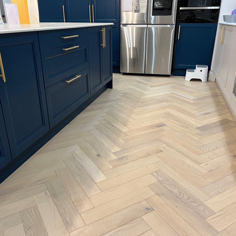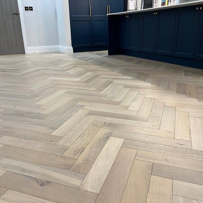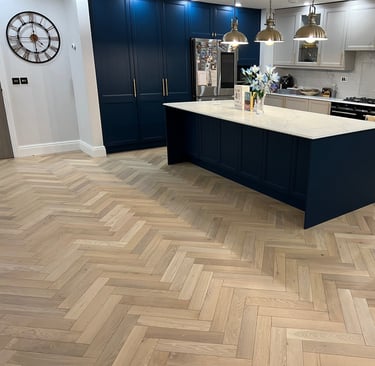 If you're considering a luxury timber floor for your home or business, a herringbone layout with a bespoke border is a timeless and impactful choice.