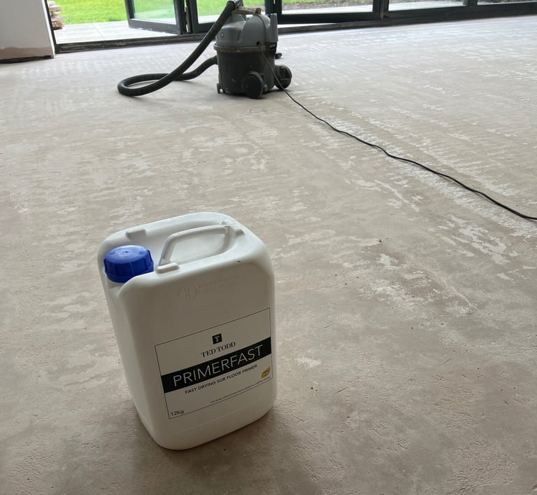 As with any high-end installation, preparation was key. We began by priming the subfloor to ensure optimal adhesion and moisture control. This crucial step creates the ideal base for a fully bonded installation, especially important for intricate designs like herringbone.