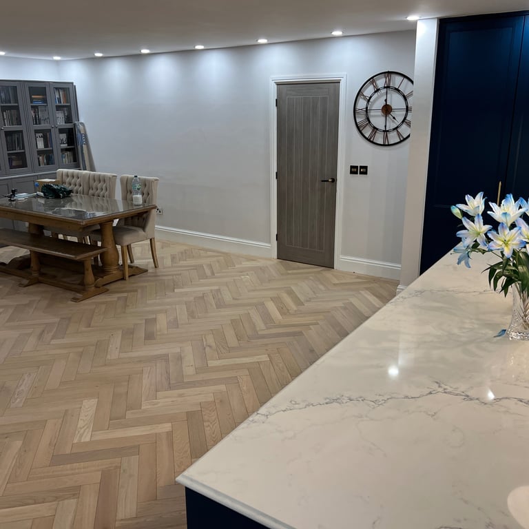 We recently completed a stunning flooring installation that highlights the timeless beauty and craftsmanship of Ted Todd Herringbone flooring. This particular project combined traditional techniques with premium materials to achieve a refined and bespoke finish – complete with a beautifully detailed border.